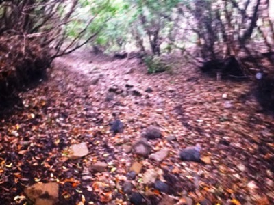 道は石ゴロゴロ、木の根っこゴツゴツ状態で走るのが大変。しかし、若い方々はさっさと行きます。