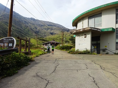 砂千里を終え、登山道路をロープ―ウェイ乗り場まで駆け下ります。