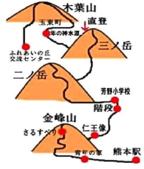 コース:熊本駅→金峰山→北廻り登山道→仁王像→(予定変更)野出→二ノ岳→三ノ岳