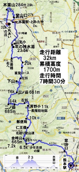 累積1700mを6時間半で行くのはさすがにきつい。最後の木葉山の上りは脚がとまった。