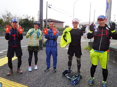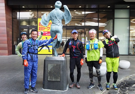 7:58、熊本駅前スタート。参加者は高瀬、伊藤、河口、小場佐、GOの6名。