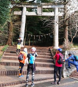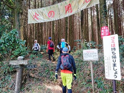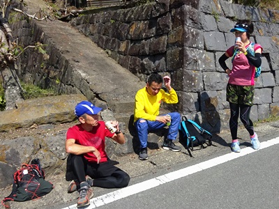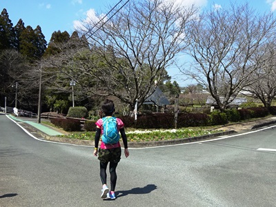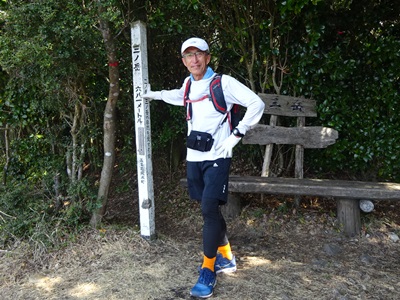 手袋は熊本城マラソンの参加賞。23分で金峰山登山口通過。