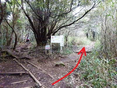 下山は南側の急登登山路を行きました。「途中道の崩壊があり、通行は控えてください」と書いてありましたが、直行。