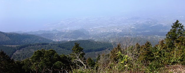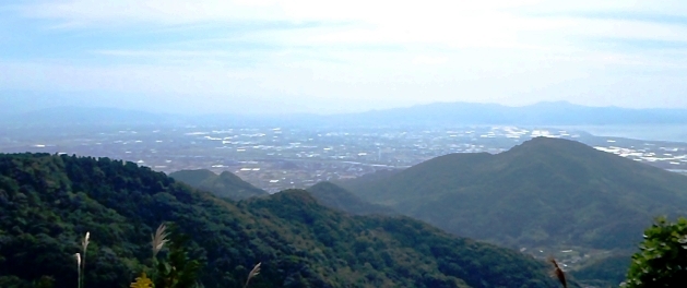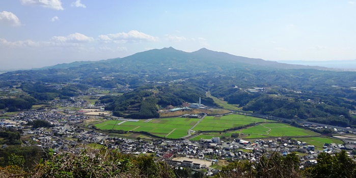 山頂からのながめ、玉東町町並み、三ノ岳が見えます。