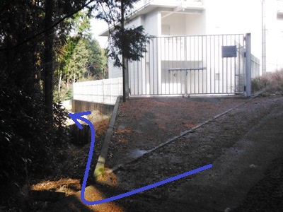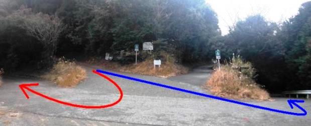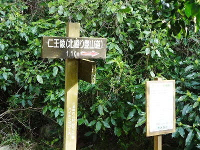 仁王像からまっすぐ(青矢印・従来の道)行かず、左へ行く(赤矢印が新コース)。