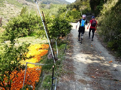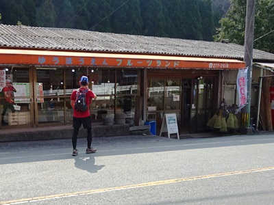県道1号線にやっと出て「ゆうほうえんフルーツランド」果樹園の中を上ります。