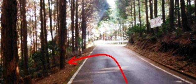 Cから1kmほど走ると左に下りる道(B地点)があります。これが直登コースです。