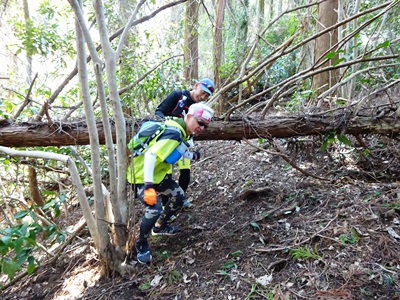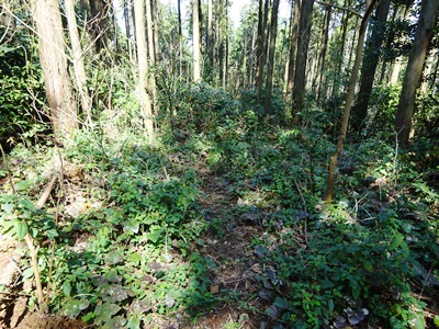道なき道、やぶ漕ぎ。全身にトゲトゲがくっつきました。