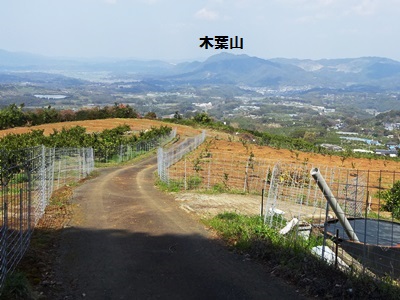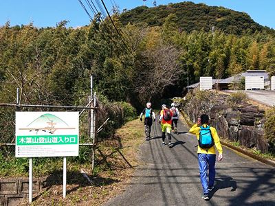 水源から木葉駅前を通過して30分で木葉山登山口へ。登山口は山頂からかなり東の方にあります。
