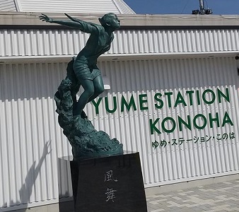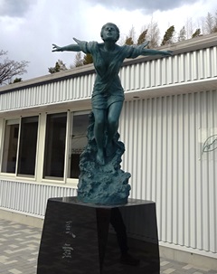 このオブジェ「名称:風舞」。日展会員の熊大の教授の作品。昨年11月に設置。日本赤十字の発祥の地にちなんで作成。