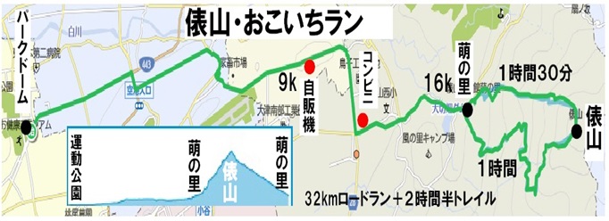 自宅(合志市)→運動公園→萌の里→俵山山頂→萌の里→運動公園→おこいち→自宅というコース。