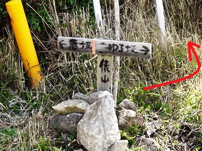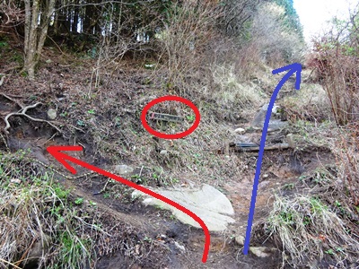 ここから「ゆる坂コース(赤矢印)」の方へ登ります。普通は左側へ行きます。