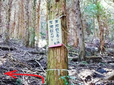 途中で「左・右」の看板。「地割れなし」の左側へ行きます。右に行くと「急登コースになります」