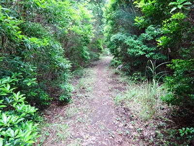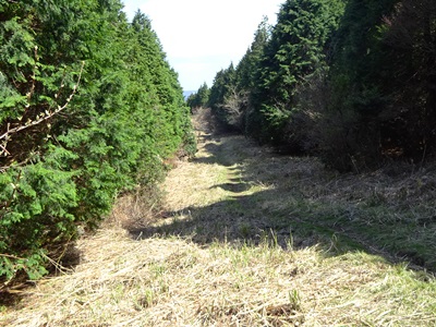 しばらく行くと防火帯(Aコース・右写真)に出ます。防火帯を20mほど上った所を左折。これがわかりづらい!