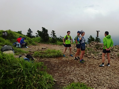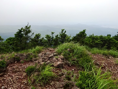 山頂には10名ほどの登山客がいました。ガスがかかって景色はゼロ。