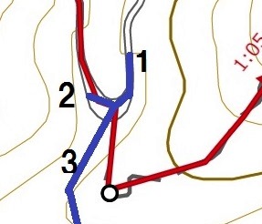 さらにB地点で道が3つに分かれていた。最初3へ行き、戻って1へ行き、これも違うということで