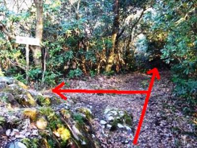 分岐部には「山火事注意」の看板があり、曲がってすぐに道標があります。それが目印です。