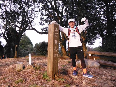 三角岳(407m)登頂(8:14)。案内書には2時間半かかるとなっていましたが、駅から47分で登頂。
