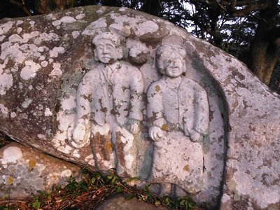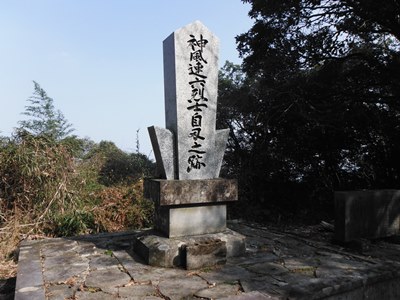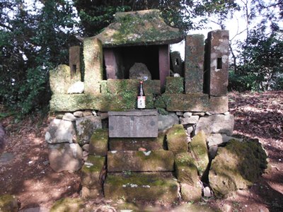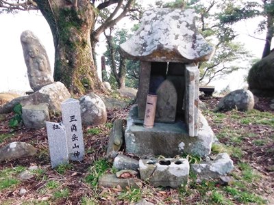 山頂には何故か天皇陛下の石像、三角岳山神社のほこらがあります。石はここにあったのでしょうか?
