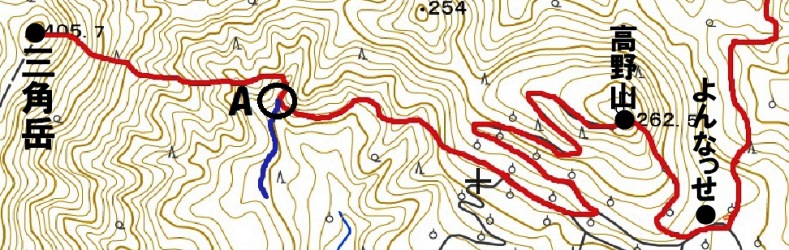 赤線が正規。Aが道を間違った場所。青線が間違って進んだ道。