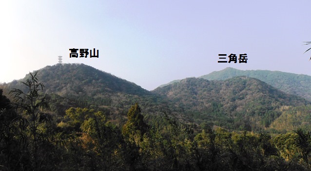 この辺から、振り向くと、いま登った高野山と三角岳が見えます。