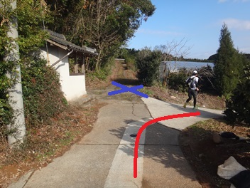 道路に出て5分でT字路に出ます。ここを右折。左に行くと半島の北側に出ます。