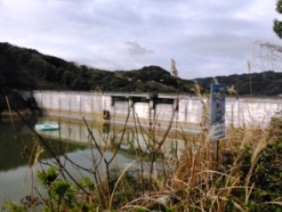 石打ダム到着・そばのダム展望場で15分休憩(10:22)。