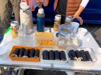 全員並んで、西南西を向いて、黙ってパクパク。ベスト記録が出ますように・・・