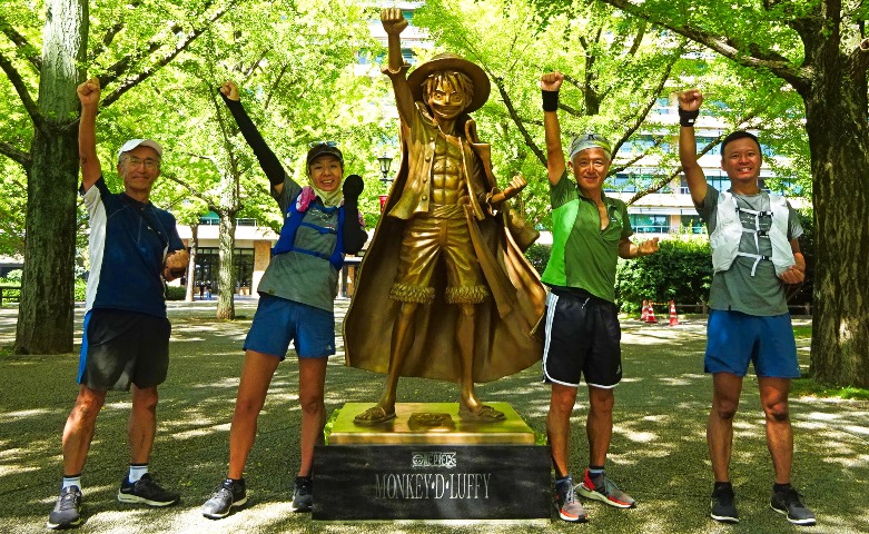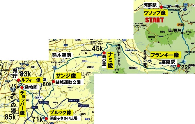 熊本県内に設置された「One Piece」像7体を半日で、すべて見ようという企画。