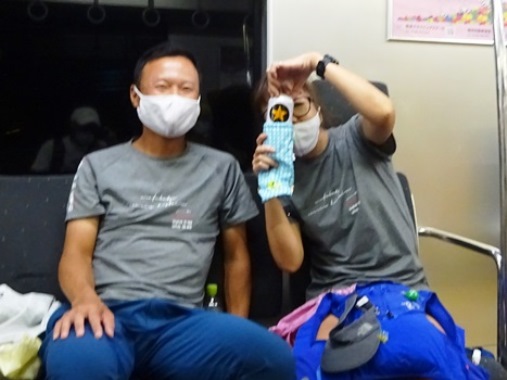 JR22:25熊本駅発で阿蘇駅へ。車内で今日参加のメレペアーと合流。なんとビール片手。5本目だと!