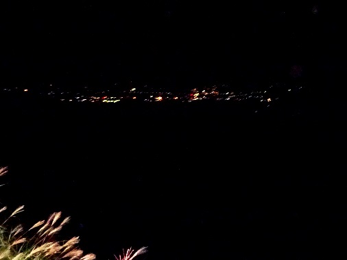右)山腹の途中で見えた、一の宮町の夜景。