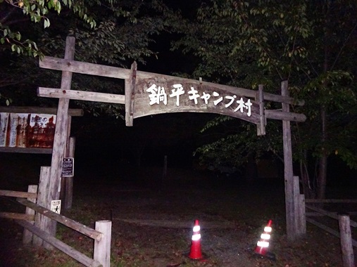 ●右)鍋の平キャンプ場(14km・1:54)。車はありますが、人影はなし。