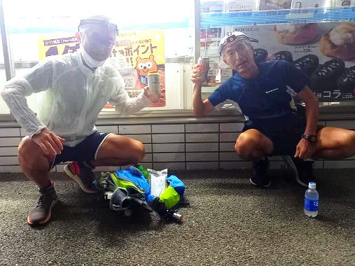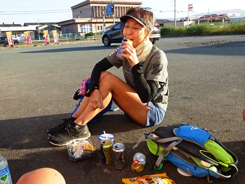 右)御船手前3kmで、最後のコンビニ休憩。