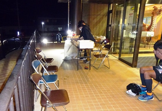 ●「樺島公民館復路エイド127km」。1:02着。灯台の帰りにここに寄ります。ここでカレー食事10分休憩。