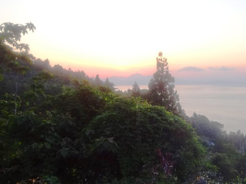 対岸に見える山々を左から右へ、すべて走ってきました。217km34時間。我ながら感心。
