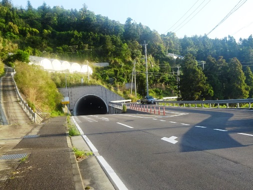 右)大浜トンネル(61km)。ここを抜けると女神大橋に出ます。